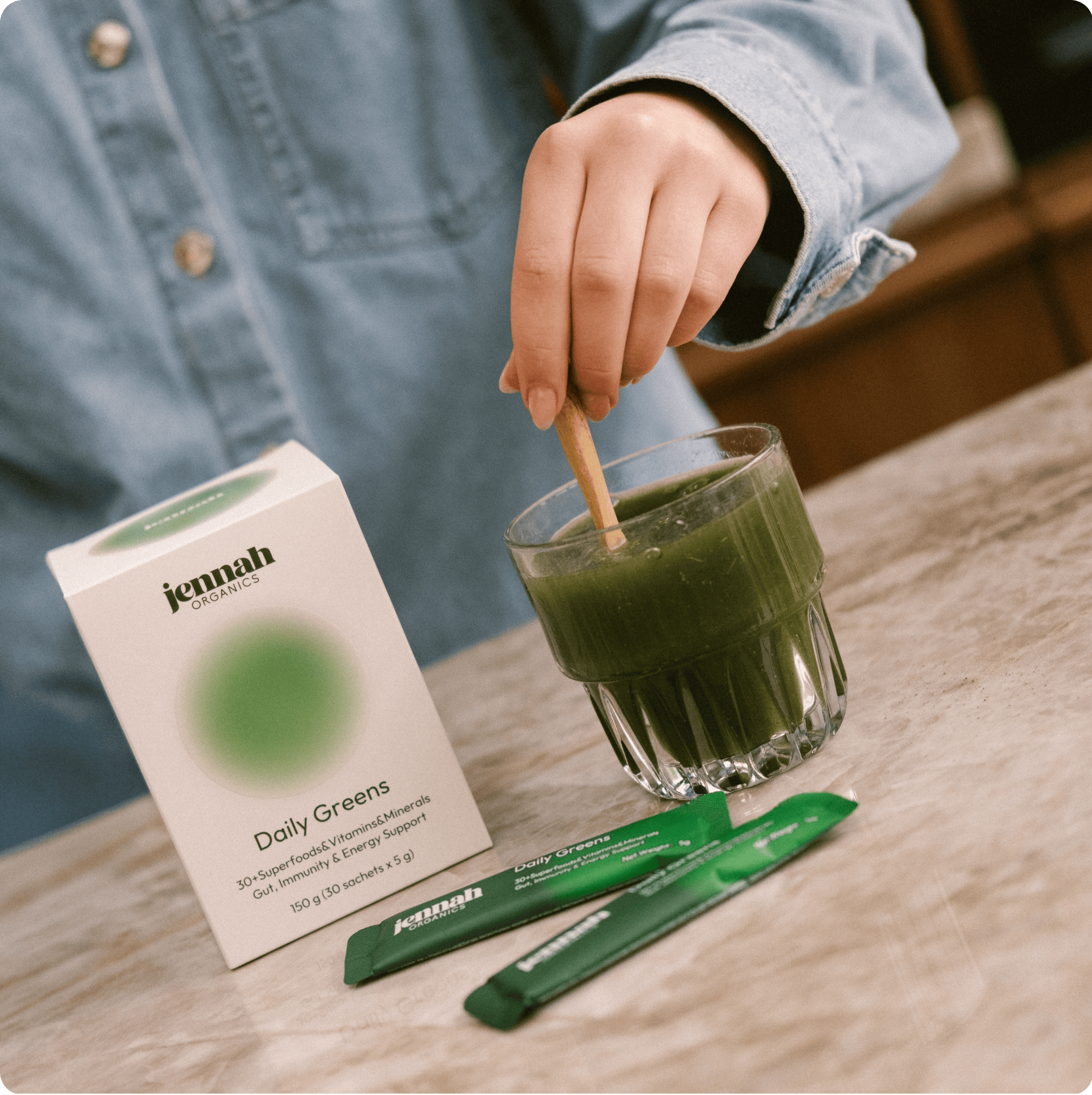 Neem één Daily Greens stick en scheur deze open. Compact, hygiënisch en ideaal voor thuis, werk of onderweg.